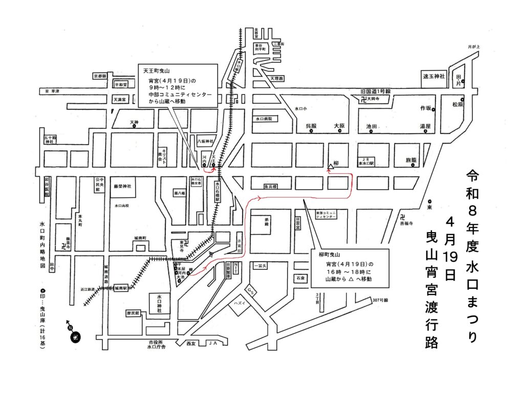 令和8年度 水口まつり 曳山宵宮渡行路(4月19日)